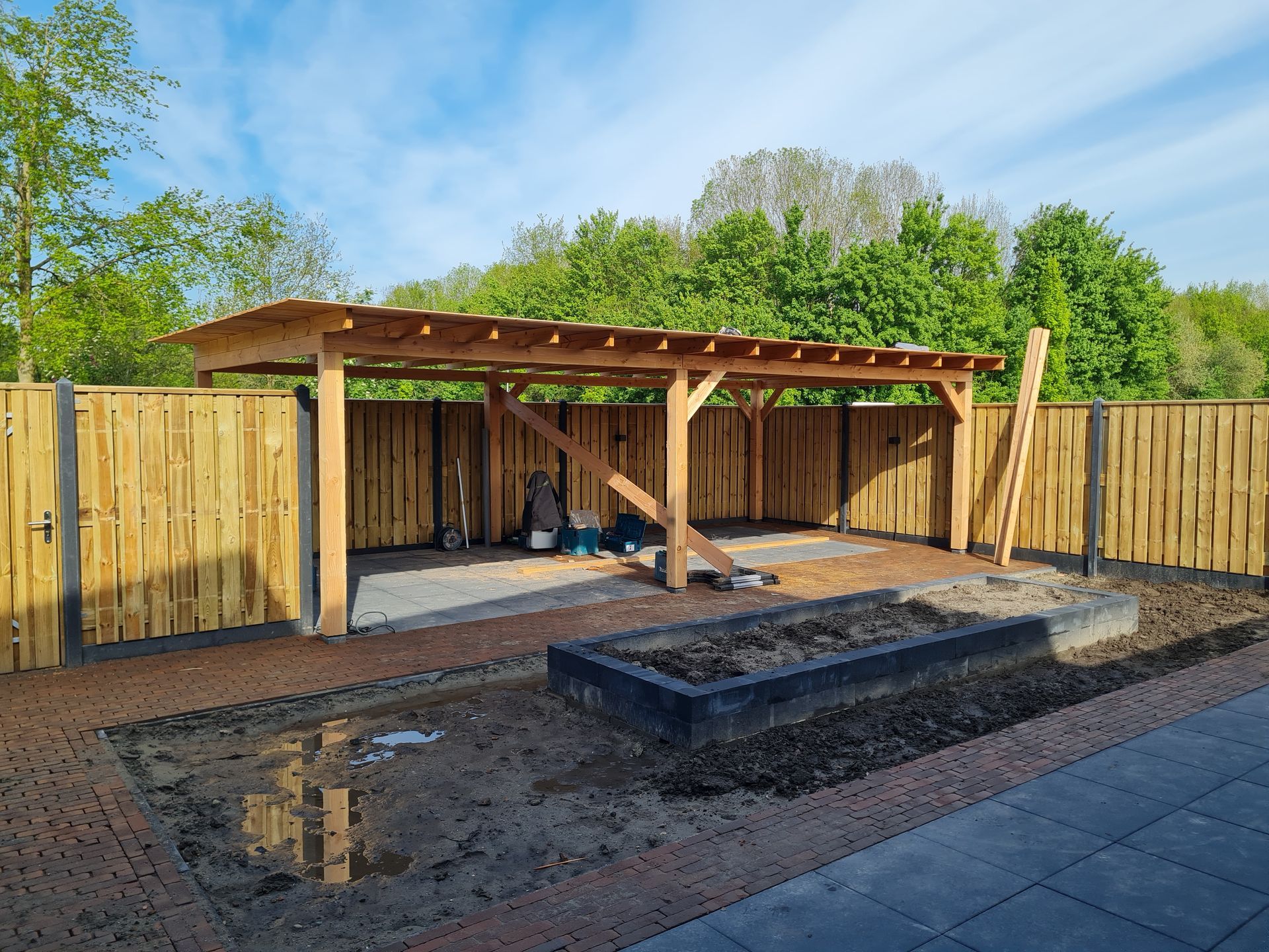 Hierbij kwamen de volgende facetten aan bod: grondwerk, bestrating, overkapping, beplanting en erfafscheiding